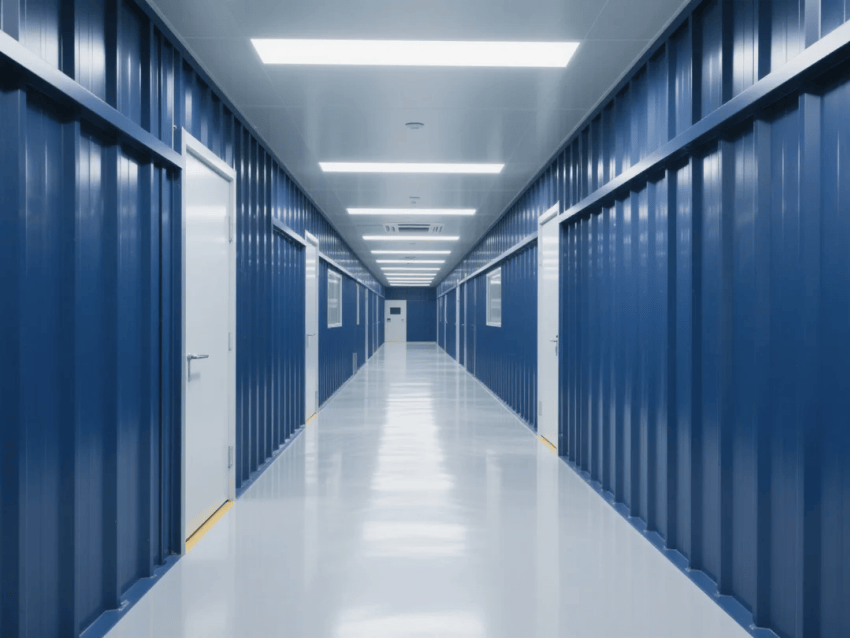車(chē)間采用模塊化潔凈室結(jié)構(gòu),墻體采用50mm厚深藍(lán)抗菌彩鋼板,接縫處采用圓弧處理工藝。自動(dòng)化沖壓線與激光焊接工作站呈U型交替布局,工作站間設(shè)置深灰不銹鋼傳遞窗,確保物料流轉(zhuǎn)潔凈度。吊頂系統(tǒng)配置FFU高效過(guò)濾單元,維持≥20次/h換氣次數(shù),氣流組織采用頂送側(cè)回模式。