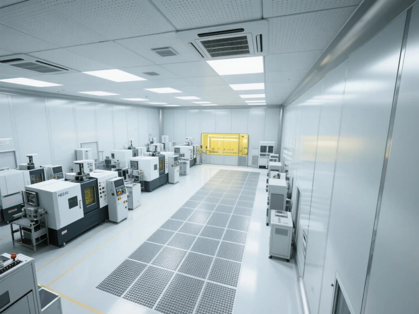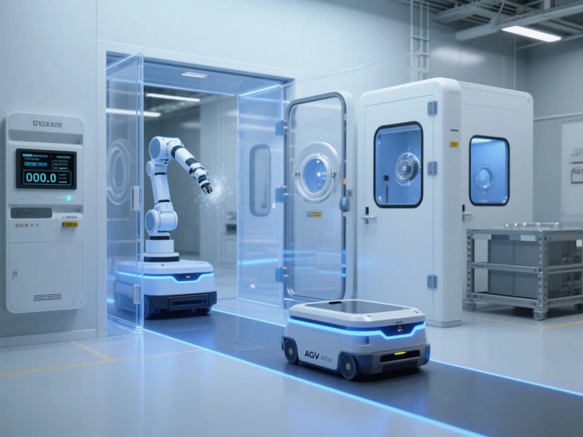 模塊化功能單元:劃分微米級(jí)加工區(qū)(黃光照明)、光學(xué)檢測(cè)區(qū)(黑箱設(shè)計(jì))、物料緩存區(qū)(負(fù)壓隔離)
