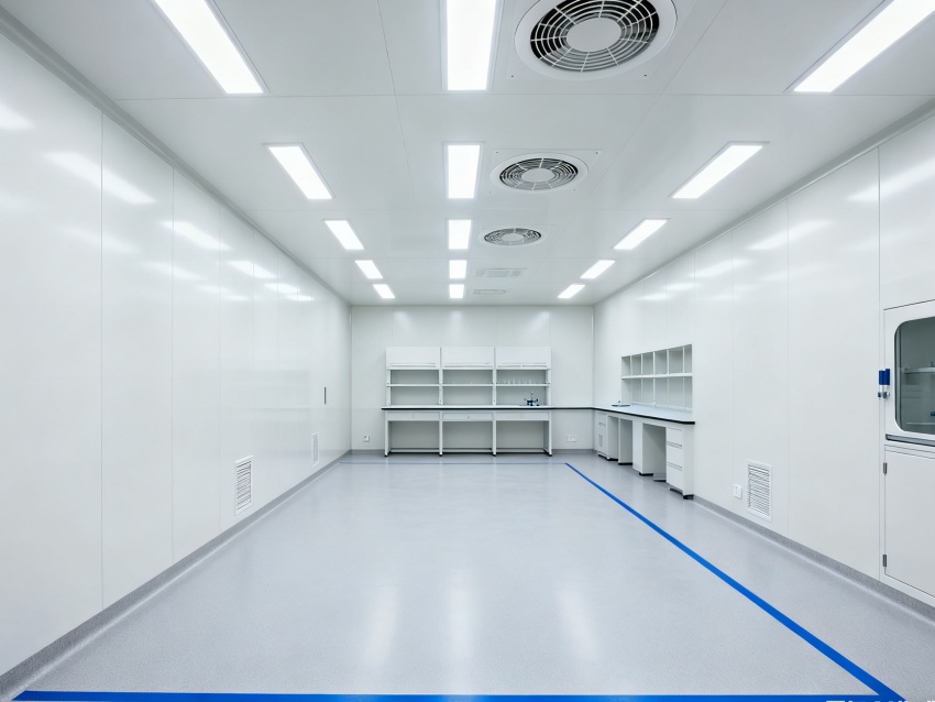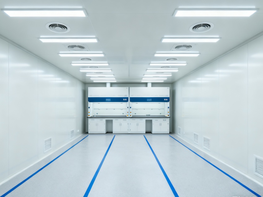 實驗室潔凈度嚴(yán)格遵循萬級標(biāo)準(zhǔn)(ISO8級),每立方米空氣中≥0.5μm微粒數(shù)≤352000個,采用初效-中效-高效三級空氣過濾系統(tǒng),配合垂直層流送風(fēng)設(shè)計,實現(xiàn)每小時20-25次空氣置換。室內(nèi)墻面采用耐腐蝕潔凈彩鋼板,地面為PVC無菌卷材,所有接縫做密封處理;溫度控制在22±2℃、相對濕度50±5%RH,部分區(qū)域維持5-8Pa負(fù)壓,有效防止交叉污染,符合生物安全實驗室建設(shè)規(guī)范。