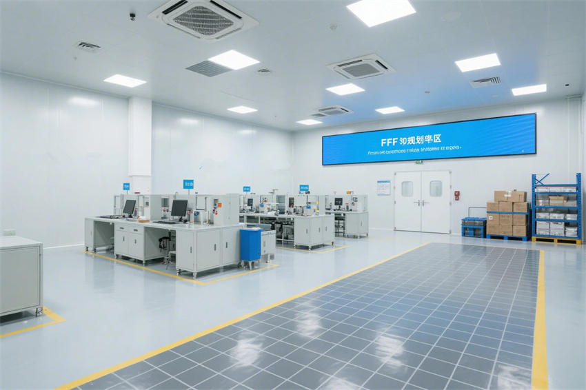 地面采用3mm導電環氧自流平,表面電阻10^5~10^8Ω,有效導除靜電;