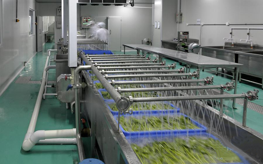 食品加工凈化車間以采用鋼混或磚砌結(jié)構(gòu)為主,并根據(jù)不同產(chǎn)品的需要,在結(jié)構(gòu)設(shè)計(jì)上,適合具體食品加工的特殊要求。車間的空間要與生產(chǎn)相適應(yīng), -般情況下,生產(chǎn)凈化車間內(nèi)的加工人員的人均擁有面積(除設(shè)備外) ,應(yīng)不少于1.5平方米。過于擁擠的凈化車間,不僅妨礙生產(chǎn)操作,而且人員之間的相互碰撞,人員工作服與生產(chǎn)設(shè)備的接觸,很容易造成產(chǎn)品污染。車間的頂面高度不應(yīng)低于3米,蒸煮間不應(yīng)低于5米。加工區(qū)與加工人員的衛(wèi)生設(shè)施,如更衣室,淋浴間和衛(wèi)生間等,應(yīng)該在建筑上為聯(lián)體結(jié)構(gòu)。水產(chǎn)品,肉類制品和速凍食品的冷庫(kù)與加工區(qū)也應(yīng)該是聯(lián)體式結(jié)構(gòu)。